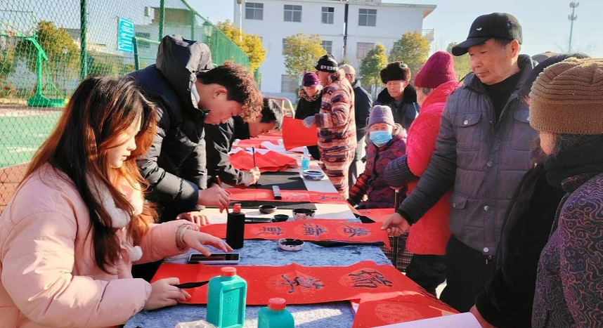 为助力乡村振兴提质增效,营造欢乐祥和的新春氛围,推动优秀传统文化进基层,元旦期间,校团委组织书美协会大学生志愿者赴学校定点帮扶的凤阳县枣巷镇黄咀村开展“移风易俗倡新风,春联送福赠万家”文化下乡活动。大学生书美协会指导老师、外国语学院党委副书记张海亮带队指导。