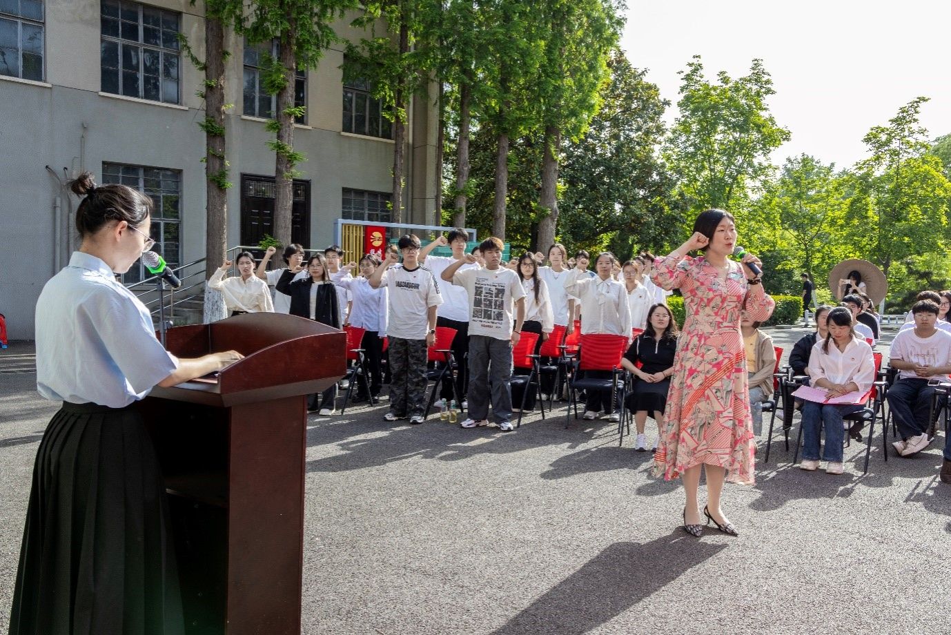 活动上举行了新发展团员入团仪式,引导青年在“仪式感”中迸发“使命感”。校团委书记张聪带领新团员宣读入团誓词,铮铮誓言,响彻广场,彰显着新团员们对共青团组织的无限向往与为共产主义事业奋斗的坚定决心。