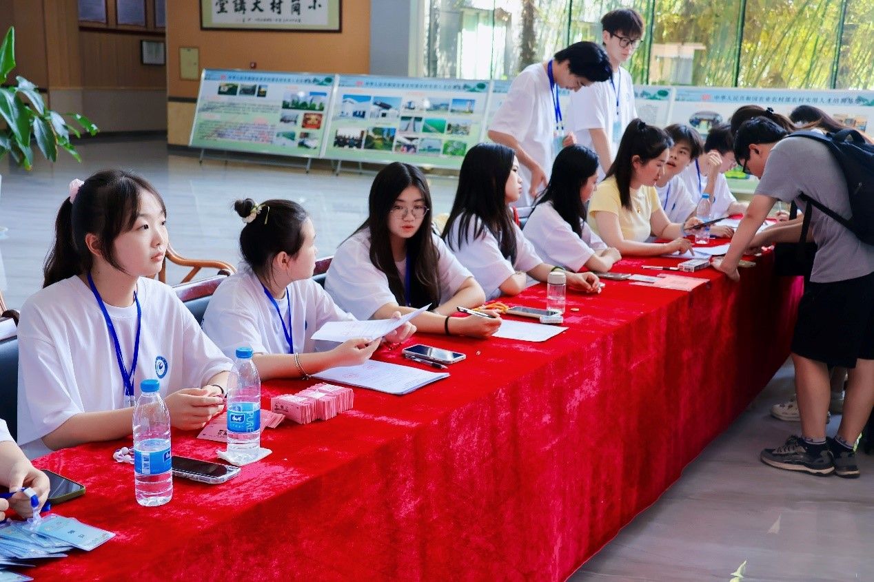 为保障300余名师生顺利报到,团队提前规划部署,构建起高效有序的服务体系。按照“高效协同、精准对接”原则,13名队员分为签到引导组、缴费事务组、物料发放组三大执行板块,并设立综合协调组统筹全局,形成“三横一纵”的服务矩阵。各小组既各司其职又密切协作,通过实时沟通机制实现信息无缝流转。签到引导组驻守报到大厅前沿,用清晰指引帮助初次参与实践的师生快速完成登记,专业服务获带队教师一致点赞;缴费事务组提前联动当地财务部门,针对小岗村部分区域网络信号不稳定的问题,不仅调试好POS机设备,更准备了现金收缴备用方案,确保费用收缴与票据开具零差错、零滞留;物料发放组则创新采用“个人包+团队包”分类打包模式,通过流水线式分发流程,高效完成全部物资发放,现场始终秩序井然。
