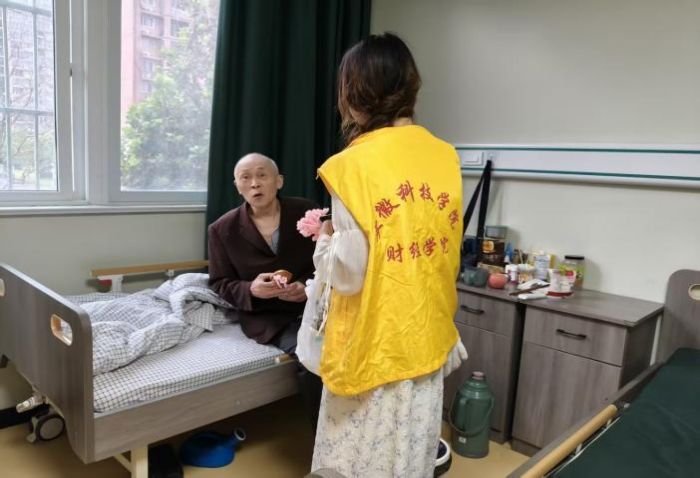 成员们聚焦高血压、糖尿病等老年常见慢性病,查阅资料后用通俗易懂的语言开展疾病预防与健康管理科普,指导老人科学饮食、合理运动,提升健康素养。同时,以手工花艺为载体开展艺术疗愈活动。成员们悉心帮助陪伴老人折叠花瓣、搭配色彩。活动现场笑语盈盈,老人们在专注创作中缓解了孤独感,公寓内洋溢着温馨的艺术气息。此外,财经专业学子聚焦老年人防诈骗痛点,剖析“保健品传销”“虚假投资”等典型骗局,拆解诈骗话术,组织模拟场景演练,提升老人们的风险防范意识和识骗能力,为财产安全筑牢“防护墙”。