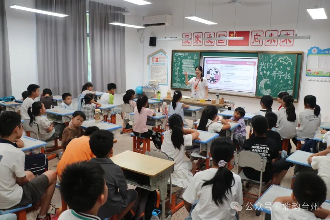 “老师带我们认识了好多‘朝代朋友’!秦朝有兵马俑,唐朝的诗好美,我还记住了‘七七事变’,老师说我们要记住历史!”欢岙小学的小范同学掰着手指数着刚学到的朝代,眼睛亮晶晶的。而在雷峰小学,萱萱同学则对舞蹈课情有独钟:“我最喜欢跟着音乐跳舞啦!老师教的动作像小蝴蝶飞,转圈圈的时候特别开心!”她还兴奋地补充,“英语课也像玩游戏,老师教我们用英语打招呼、说颜色,可好玩了!”落雁社区的小翁同学则对宣讲课印象深刻:“哥哥姐姐们讲的故事我都听懂了,知道了要保护自己、爱护环境。”当被问到喜不喜欢这些“小老师”时,孩子们纷纷点头,有的还悄悄画了画送给老师。稚嫩的声音里充满了对知识的热情和对“小老师”们的喜爱。