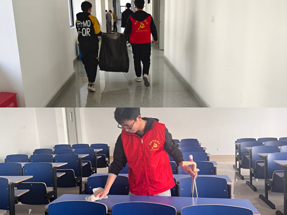 为学习雷锋精神,增强大学生的服务意识,3月9日,信息与网络工程学院组织学生会同学在尚行楼C开展“志愿我先行,教室大扫除”活动,本次活动由学生会指导老师崔北坤负责,学生会全体成员共同参与。