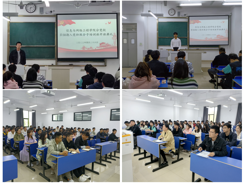 为加强入党积极分子教育培养工作,提高党员发展质量,4月26日下午,信息与网络工程学院在尚行楼C204举办第58期入党积极分子培训班开班典礼。学院党委副书记、纪委书记韦乃学、专职辅导员李军成、专职辅导员崔北坤、专职辅导员许磊出席会议,培训班109名学员参加会议,会议由专职辅导员陈凯主持。