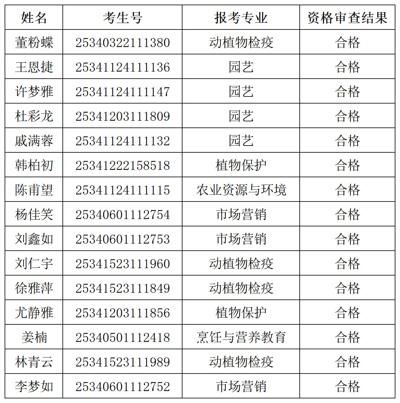 经本人申请、资格初审和资格复审,现将董粉蝶等15名考生免试就学资格复审结果予以公示。