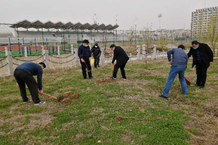 同志们自发购买了树苗,植树现场,浓浓春意,呈现出一片忙碌景象。大家挥锹铲土、扶直苗木、培实新土、提桶浇水,认真地完成着每一道工序,合力种下20余棵观赏油桃、红桃等苗木。经过一番其乐融融的劳动,一株株新绿昂然挺立,在和煦的春风中焕发出勃勃生机。