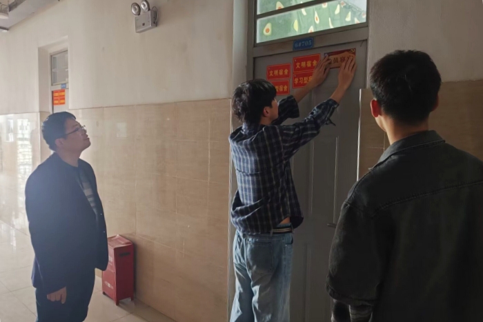 杜小明深入学生宿舍,与学生党员亲切交流,深入了解学生党员的日常学习生活情况和表率作用发挥情况。他表示,党员寝室挂牌一是通过亮明党员身份,激励学生党员时时作表率,事事做先锋,在学习生活各方面彰显榜样力量,充分发挥示范引领和辐射作用;二是希望学生党员自觉接受广大师生监督,不断提高党性意识,充分发挥自我管理、自我教育、自我服务和自我监督的作用,以实际行动促进宿舍文明创建,进一步推动学院学风建设。