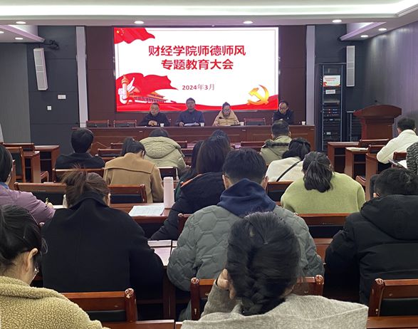 3月13日下午,财经学院在西附楼111会议室召开师德师风专题教育会议。学院领导班子、全体教师参加会议,会议由学院党委副书记、纪委书记耿广汉主持。