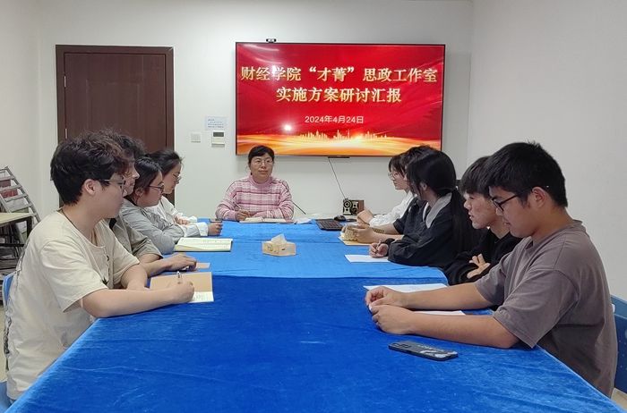 高校思想政治工作是一项固本铸魂工程。为推动学院大学生思想政治教育工作高质量发展,充分发挥“才菁”思政工作室在大学生思想政治教育中的牵引带动作用,4月24日下午,财经学院在致知楼C204教室召开“才菁”思政工作室项目推进会,学院全体思政委员参加。