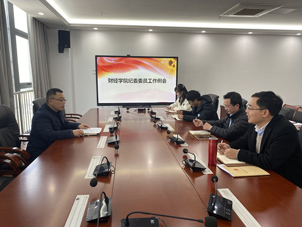 3月4日,财经学院在龙湖校区西辅楼317会议室召开纪委委员工作例会。会议由学院党委副书记、纪委书记耿广汉主持。