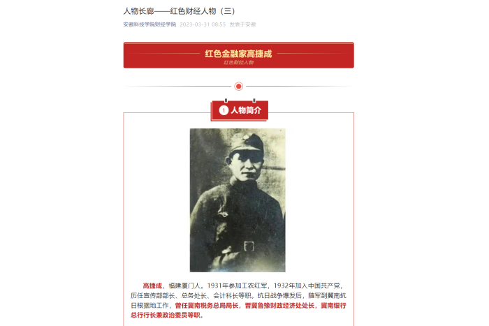 习近平总书记强调,“用好红色资源,传承好红色基因,把红色江山世世代代传下去”。红色金融人物是红色资源的重要组成部分,他们为革命胜利和社会发展提供了重要的物力财力和精神支撑。为进一步引导财经学子牢记革命历史,传承红色基因,坚定理想信念,矢志“专业报国”,财经学院设置“人物长廊”红色财经人物专栏,从3月开始陆续推出多期红色财经人物故事,持续开展红色文化育人工作。