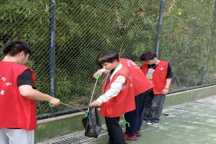 实践过程中,团队成员与小区环卫工人对接后,明确分工、细化任务,进行志愿卫生清洁工作。成员们拿着清洁工具,环保夹、环保袋,找寻垃圾,从落叶到纸屑,从瓶罐到烟头,既打扫了社区周边楼道、街道公共设施,又对辖区内的卫生死角、绿化带也进行了彻底的清扫。此外,大家将小区内随意摆放的自行车、电动车等集中转移到指定的停车区域内,整理歪斜、倒地的自行车,以方便居民通行,打造和谐有序的社区环境。