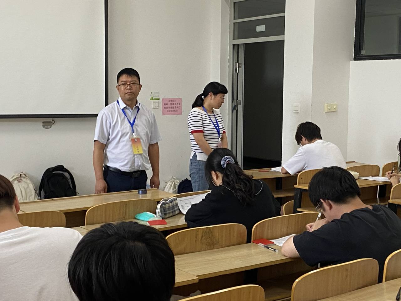 各位领导老师每到一个考场都对学生考纪等情况进行检查。各考场考试组织规范,监考教师认真负责,学生自觉遵守考试纪律、专心作答,考场秩序井然。