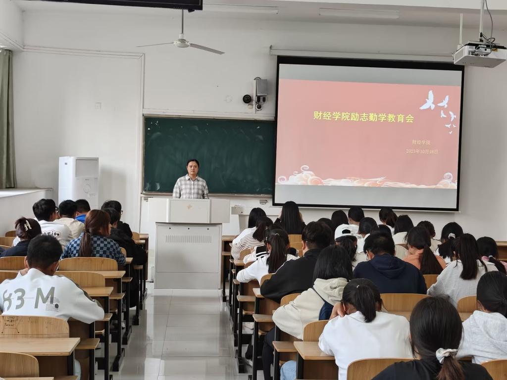 为进一步推进财经学院学风建设年活动,激励受资助学生克服困难、勤奋学习,发挥资助育人成效,10月18日,财经学院在致知楼C108开展受资助学生励志勤学教育大会。学院党委副书记耿广汉及2023级全体受资助学生参加了会议。会议由专职辅导员宣晶晶主持。