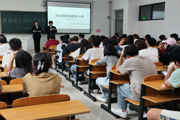 为丰富同学们的校园文化生活,激发学习英语的积极性,提高英语口语表达能力,财经学院英语学习与交流协会于6月5日下午在致知楼B109成功举办第一届英语情景剧配音表演大赛。财经学院社团联合会指导老师陆文斌、财经学院学生会体育发展中心负责人葛抗飞、财经学院心理联合会副会长刘建、财经学院社团联合会市场部部长王文静应邀担任评委。