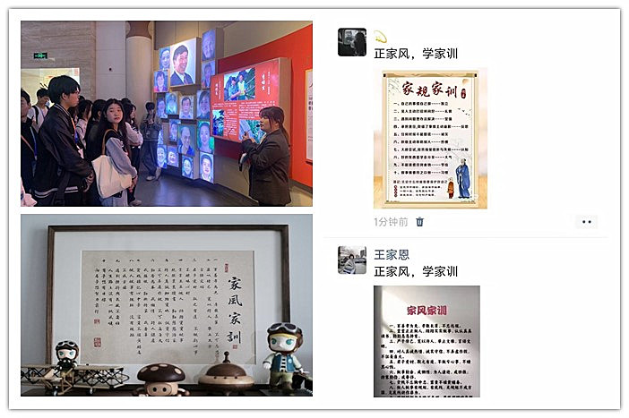 会上,同学们交流了班级社会实践活动开展情况。部分团支部组织同学们在家乡所在地“追寻先贤足迹,弘扬清廉文化”。同学们参观了凤阳朱元璋故居、黄山周逸故居、合肥包拯故居、马鞍山刘禹锡故居、定远包公廉政文化公园、河南省商丘市侯方域故居、胡适故居以及颍州西湖会老堂等历史文化遗址,通过实地探访,感受先贤的清廉风范与家国情怀。还有的团支部通过“访古迹、写家训、扬新风”等形式,打造“行走的思政课”,让优良家风浸润青年心田。会计232班实践团队参观了歙县家风家训馆,了解了当地的家风家训发展史。会计222班余菲洋交流了自己参观西递村履福堂的感受,她分享道:“楹联把读书、积善刻进家族基因,让我明白真正的‘富养’是精神传承。”财务管理231班石贤炜感慨:“六尺巷斑驳古墙上的‘让他三尺’,比任何教科书都生动地诠释了礼让家风。”同学们还通过写信、微信、朋友圈等多种形式“写家书、晒家风”,与亲朋好友分享好家风好家训,表示要以先贤为榜样,树立正确的价值观,争做新时代清廉文化的传承者和践行者。
