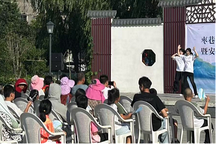 送文化下乡纳凉晚会现场热闹非凡。舞台上,同学们与其他演职人员一起,为当地居民带来了一场精彩绝伦的视听盛宴。歌曲、舞蹈、小品等节目轮番上演,现场掌声、欢笑声此起彼伏。同学们用青春活力点燃了乡村的夜晚,不仅丰富了村民的精神文化生活,也为乡村文化振兴注入了新的活力。“能够参与这次村晚演出,将欢乐带给乡亲们,我感到特别荣幸。”其中一位同学激动地说道。