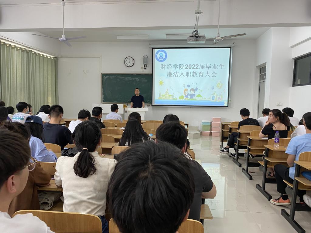 为引导和教育毕业生做好入职准备,增强拒腐防变、抵御风险能力,自觉坚守道德和法律底线,扎实走好迈入社会的第一步,5月24日,财经学院召开廉洁入职教育大会。大会采取线下线上结合方式进行。学院党委书记杜小明,党委副书记、纪委书记耿广汉出席会议。毕业班辅导员以及2022届全体毕业生出席会议。会议由耿广汉主持。