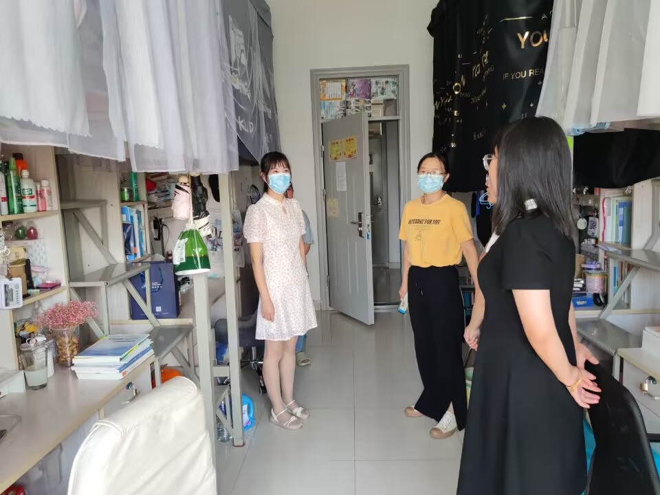 走访过程中,老师们与返校学生进行亲切交谈,细致询问了同学们的暑期经历、学习准备情况,并借此向他们送上学院的关怀和问候。在交谈中,老师提醒同学们返校后要保持良好的学习和生活规律,新学期要制定新规划,珍惜大学时光,准备好新学期的学习。同时还提醒同学们在疫情防控期间要做好个人防护工作。