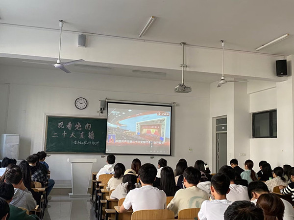 10月16日上午10时,中国共产党第二十次全国代表大会开幕会在北京人民大会堂隆重召开。财经学院团委组织各团支部在教室集中收看了党的二十大开幕会实况直播,学习习近平总书记代表十九届中央委员会向大会作的报告。