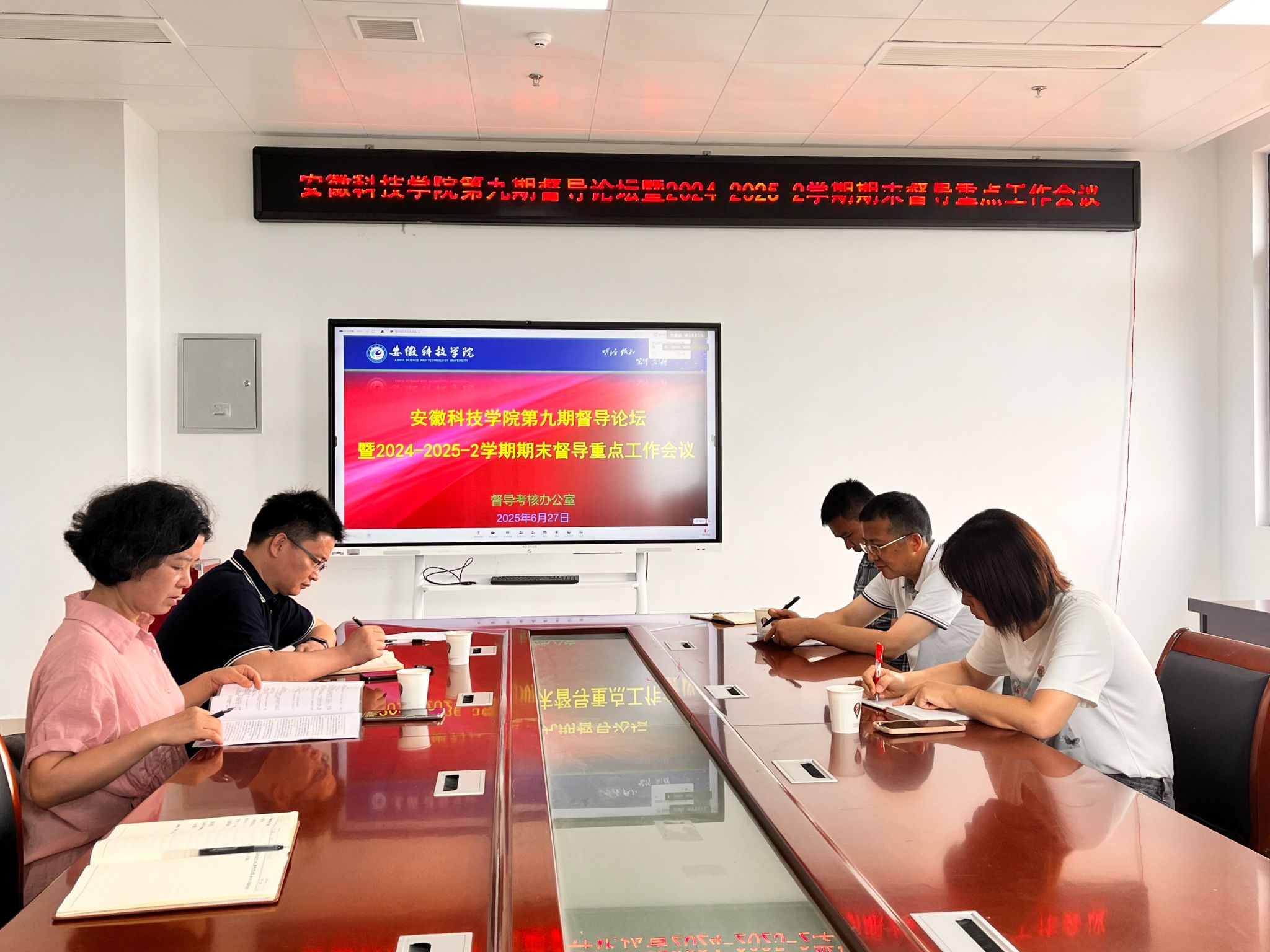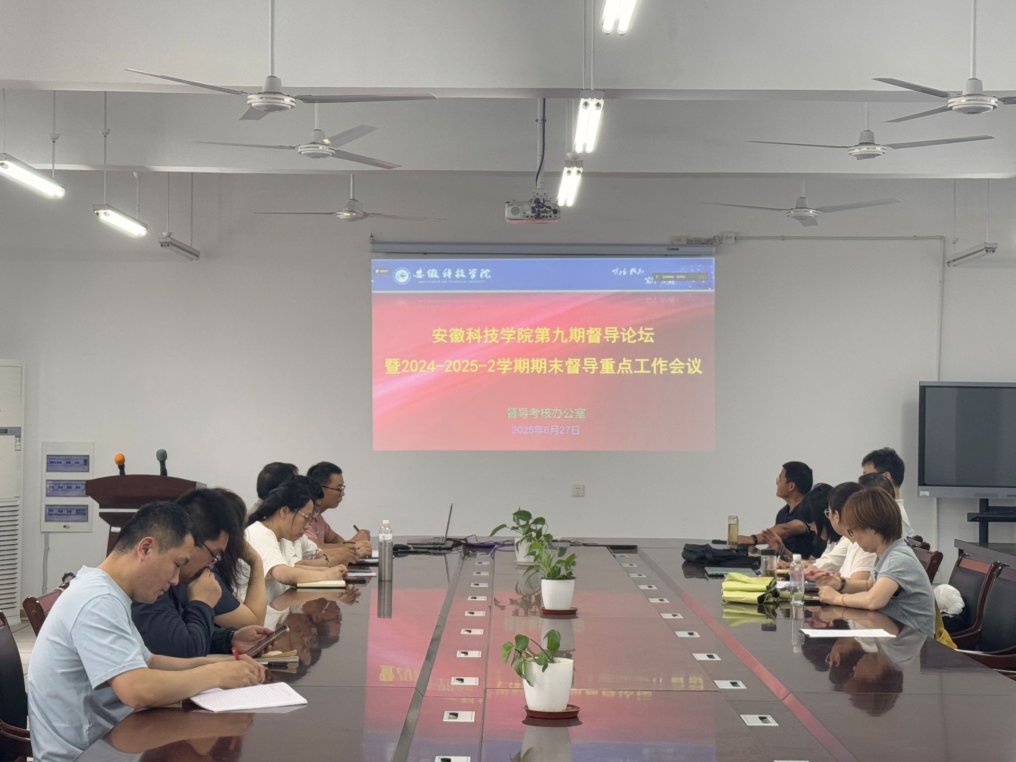 6月27日上午,学校召开第九期督导论坛暨期末教学督导重点工作会议。凤阳校区、龙湖校区和滁州校区的参会形式为线上、线下同步进行。全体校院两级督导员、督导考核办公室工作人员参加了会议,会议由督导考核办公室马万征主持。