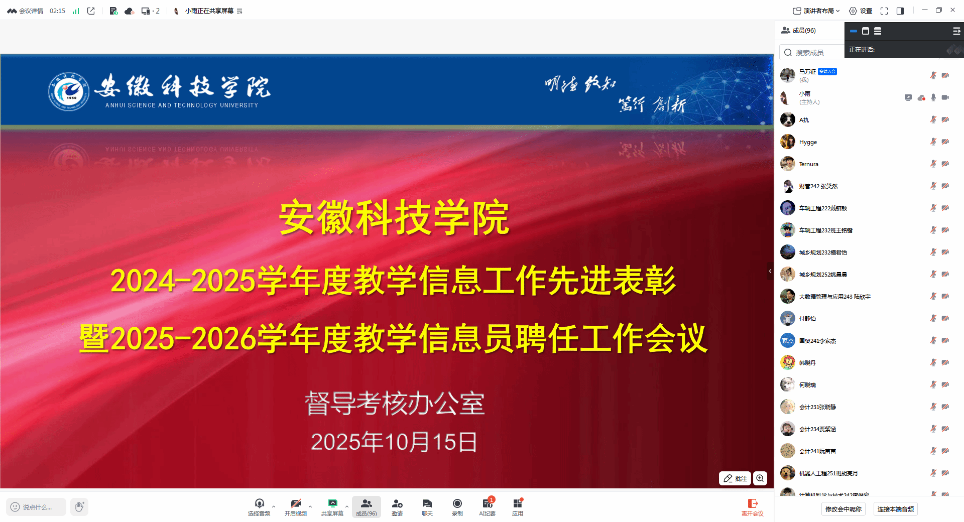 会上,督导考核办公室谢静静宣读了《关于表彰2024-2025学年度教学信息工作先进并聘任2025-2026学年度学生教学信息员的决定》,并带领全体参会人员共同学习了《乐动网页版登录入口_乐动网页版(中国)学生教学信息员管理条例(修订)》。随后,她就教学信息员的工作内容开展了业务指导与培训。优秀教学信息员代表张瑞洁在会上作了经验分享。