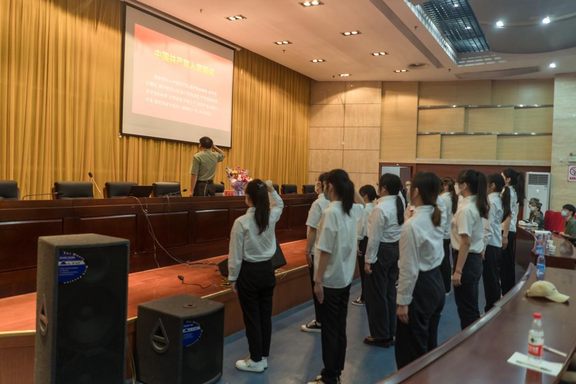 图2 2022年5月20日越战老兵郑世柱带领人文学院入党积极分子在报告厅举行入党宣誓仪式