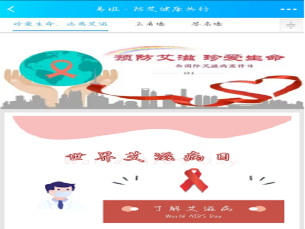 为了加强我院学生对世界艾滋病日的重视,进一步强化同学们对艾滋病病毒的了解,以及艾滋病的检查原理,同时有效地预防艾滋病的传播,唤起同学们对艾滋病病毒感染者的同情与理解,携手应对艾滋病流行带来的风险与挑战,倡导共建共治共享共行的理念,易班工作站开展了“防艾健康共行”活动。