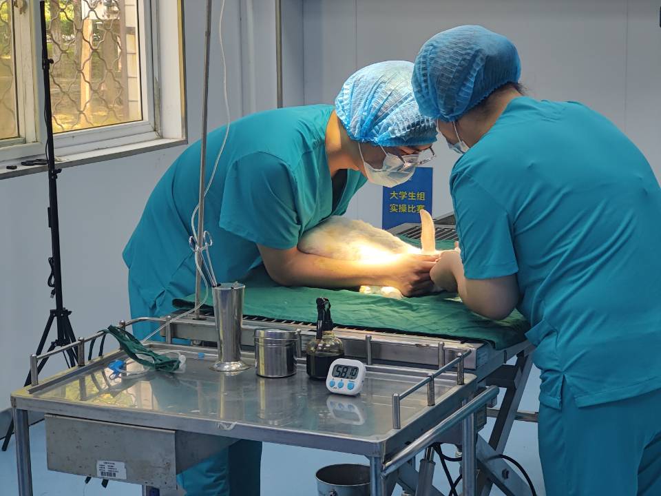 5月26日,第七届“雄鹰杯”小动物医师技能大赛在乐动网页版登录入口_乐动网页版(中国)附属兽医院手术室完成理论和实验操作考核,其中理论考核采用线上专业考核系统,随机抽取试卷进行作答;实验操作考核包括兔胃切开术、血涂片制作和徒手打结。