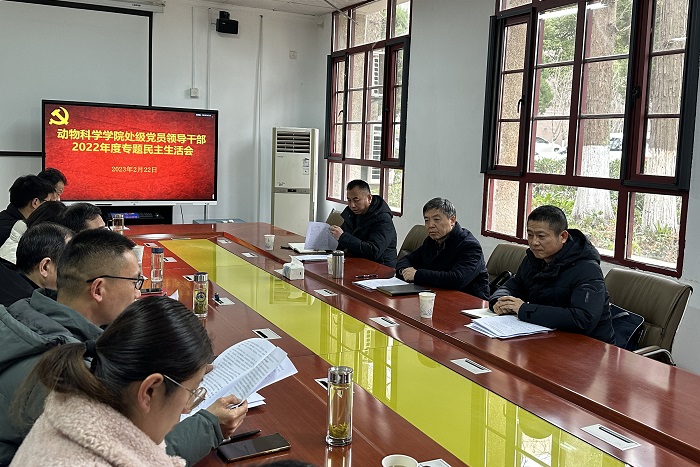 2月22日,动物科学学院召开处级党员领导干部2022年度专题民主生活会。校党委书记蒋德勤到会指导。校纪委副书记、纪委办公室主任张开宝,纪委综合办公室主任孟凡启出席会议。动物科学学院党政领导、党委委员、分工会主席、团委书记、教师代表参加会议。会议由动物科学学院党委书记姚勇主持。