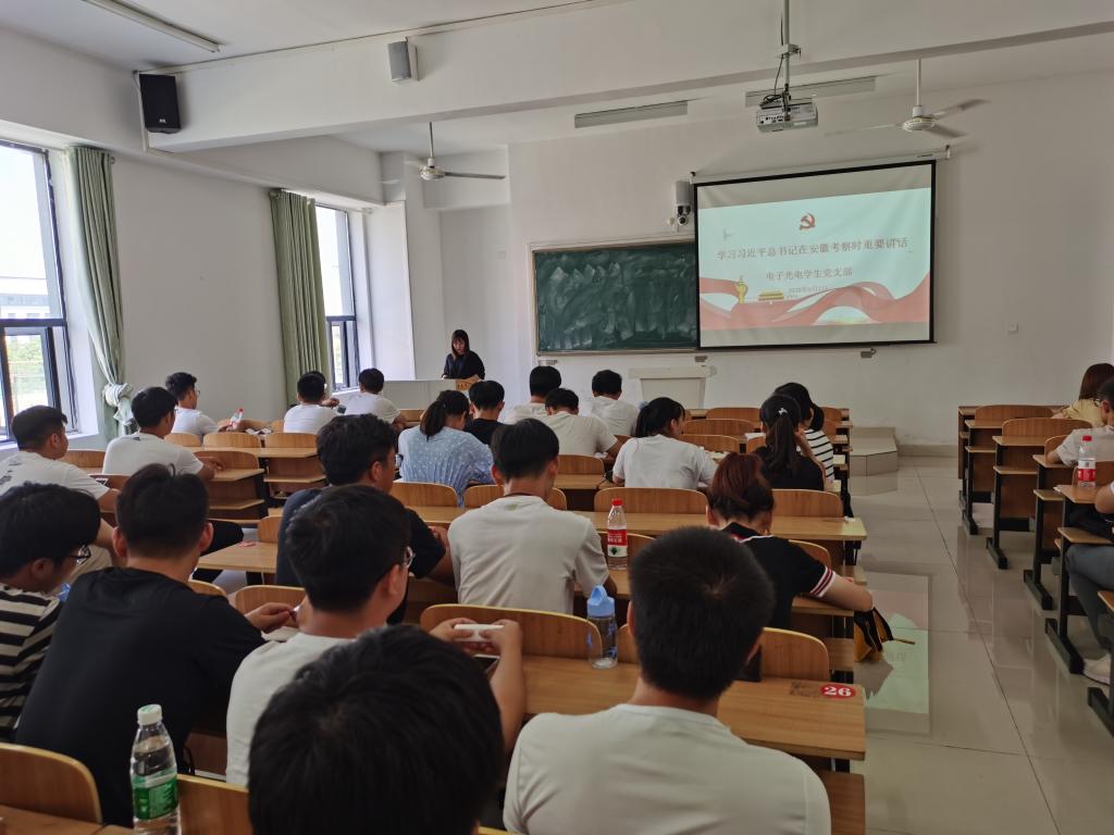 为响应学校党委号召,确保习近平总书记视察安徽重要讲话指示精神落地落实,9月7日下午,电气与电子工程学院电子光电学生党支部于致知楼A204集中学习《习近平总书记视察安徽重要讲话精神》。