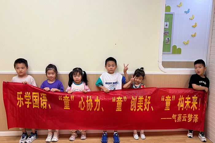为推广普通话,提高当地学生的语言表达能力和沟通能力,2023年7月12日起,电气与电子工程学院“气蒸云梦泽”团队前往江苏省无锡市锡山区艾多双语早教幼儿园进行暑期社会实践,与孩子们共同开展有趣而富有教育意义的推广普通话活动。