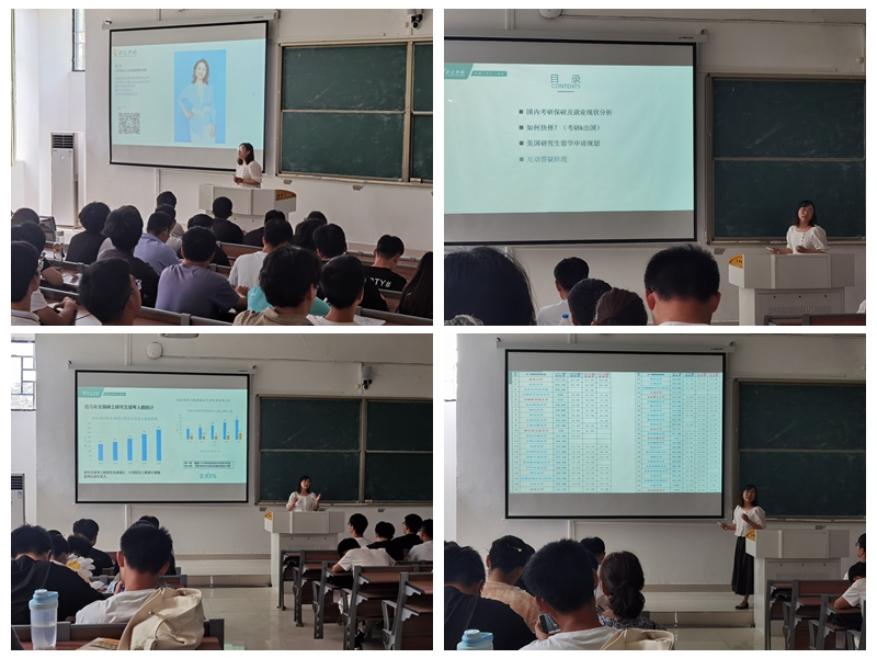 讲座中,李方首先结合各大招聘网站收集的相关数据,说明当今就业市场竞争较为激烈,提醒同学们想要获得较好的就业岗位,必须尽早做好学业规划、职业规划。接着,她与同学们分享了自己学生生涯的事迹,说明任职班级团支书期间,通过各类实践活动,增加了自己的综合能力;并通过2+2的学习方式,获得留学机会,在国外继续攻读硕士学位。李方强调考取研究生,能够有效提升我们的综合实力,帮助我们更好面对就业市场,希望各位学弟学妹在校期间,能够通过多种方式提升自我。李方表示愿意随时与各位学弟学妹展开交流,希望能够给同学们的就业考研提供一定的指导。