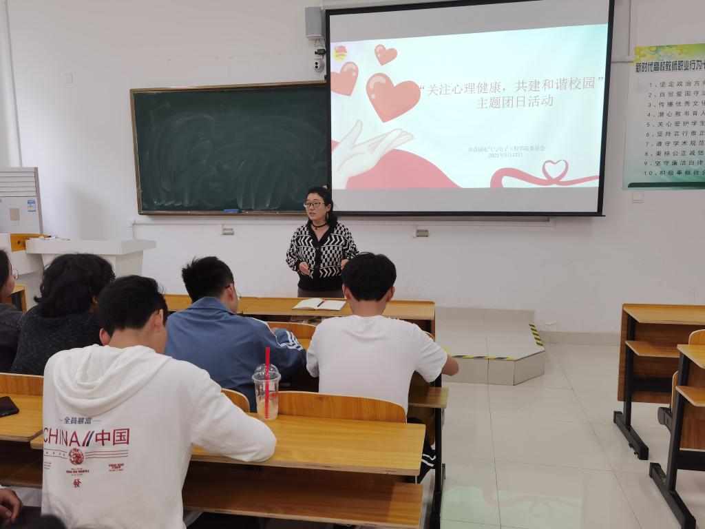 为普及心理健康知识,营造关注心理健康,重视心理健康的浓厚氛围,激发学生心理健康自我教育意识,全面推动电气与电子工程学院学生心理健康教育,5月19日下午,电气与电子工程学院团委在致知楼B105开展了“关注心理健康,共建和谐校园”主题团日活动。辅导员宋志华出席本次活动并讲话,团务中心成员、2020级团支部书记参加了本次活动。活动由团委成员邢雄浩主持。