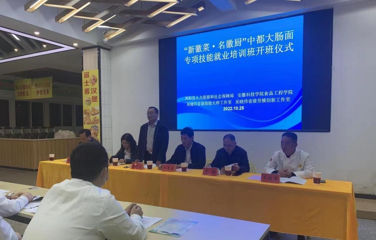 On October 25th, the opening ceremony of the special skill training class of "New Ahhui Cuisine, Famous Anhui Celebrity chef" in Fengyang County was held in Anhui Science and Technology University.
