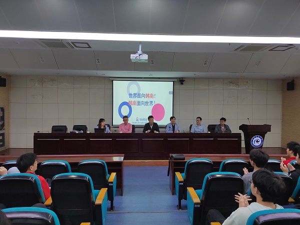 韩南大学代表团访问期间,与我校2022级、2023级机械设计制造及其自动化专业中韩班学生举行了见面交流会。连漪详细介绍了韩南大学的历史沿革、校园建设、师资力量、科研能力、校园文化、学生发展等情况,使同学们身临其境。同学们对赴韩国留学相关问题踊跃提问,积极发言。连漪对同学们所提出的问题作了详细的解答,并派送了小礼品,鼓励同学们努力学好韩国语和专业课程,欢迎同学们赴韩南大学留学深造。(特约通讯员:于卉审核:陈德用摄影:党委宣传部)
