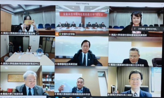 12月17日上午,我校与台湾实践大学举行“云交流”活动,打破时空阻隔,实现云端相聚。党委书记蒋德勤,党委委员、副院长黄友锐,台湾实践大学校长丁斌首、副校长江岷钦,特邀嘉宾敏惠医专校长叶至诚出席会议。会议由校港澳台事务办公室主任刘东楼、实践大学秘书室组长黄雅轩共同主持。