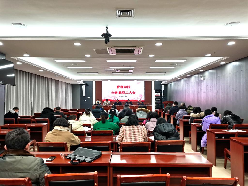 2月22日下午,管理学院在西附楼111会议室召开期初全体教职工大会。学院党政领导和全体教职工参加了会议。会议由院党委书记丁景良主持。