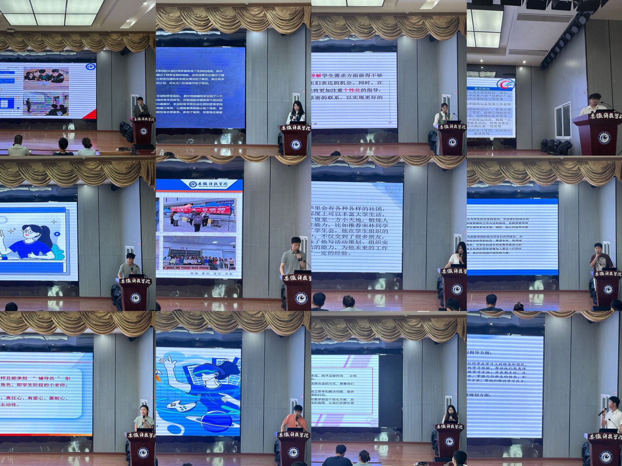 朋导互助,携手共进。展示会上,16位本科生朋辈导师代表通过PPT、视频、图片等多种形式,详细介绍了自己对朋辈导师的理解和前一阶段工作实践的心得成果,从思想引领、学业规划、班团管理、校园生活、学科竞赛、志愿服务、心理关怀等方面进行总结了前期工作开展情况,并梳理了指导过程中存在的共性、难点问题,同时对后续的工作进行了规划。