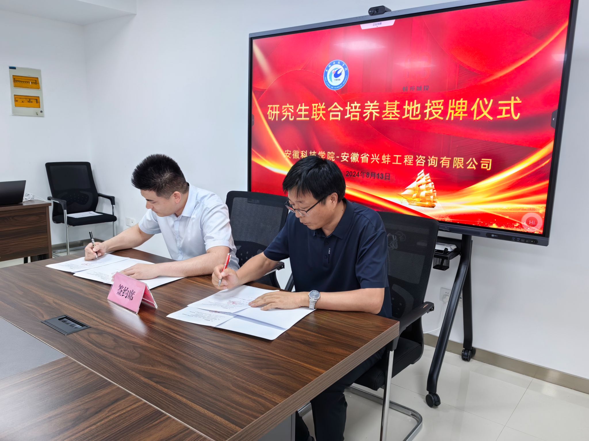 会上,双方举行了“乐动网页版登录入口_乐动网页版(中国)共建研究生联合培养基地”授牌仪式,并共同签订了《乐动网页版登录入口_乐动网页版(中国)与安徽省兴蚌工程咨询有限公司校企合作协议书》。(特约通讯员:李永鹏 摄影:李永鹏 审核:丁景良)