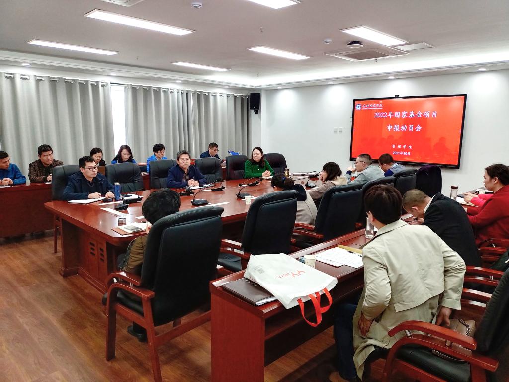 学院高度重视2022年国家基金项目申报工作,在学校召开动员会后,学院立即对2021年国家基金项目申报情况进行了认真梳理和总结,并对2022年拟申报情况进行了摸底。通过组建高质量申报团队,认真做好选题和申报书打磨工作,力争在2022年国家基金项目上取得突破。(特约通讯员:江旭聪 审核:陈传万)