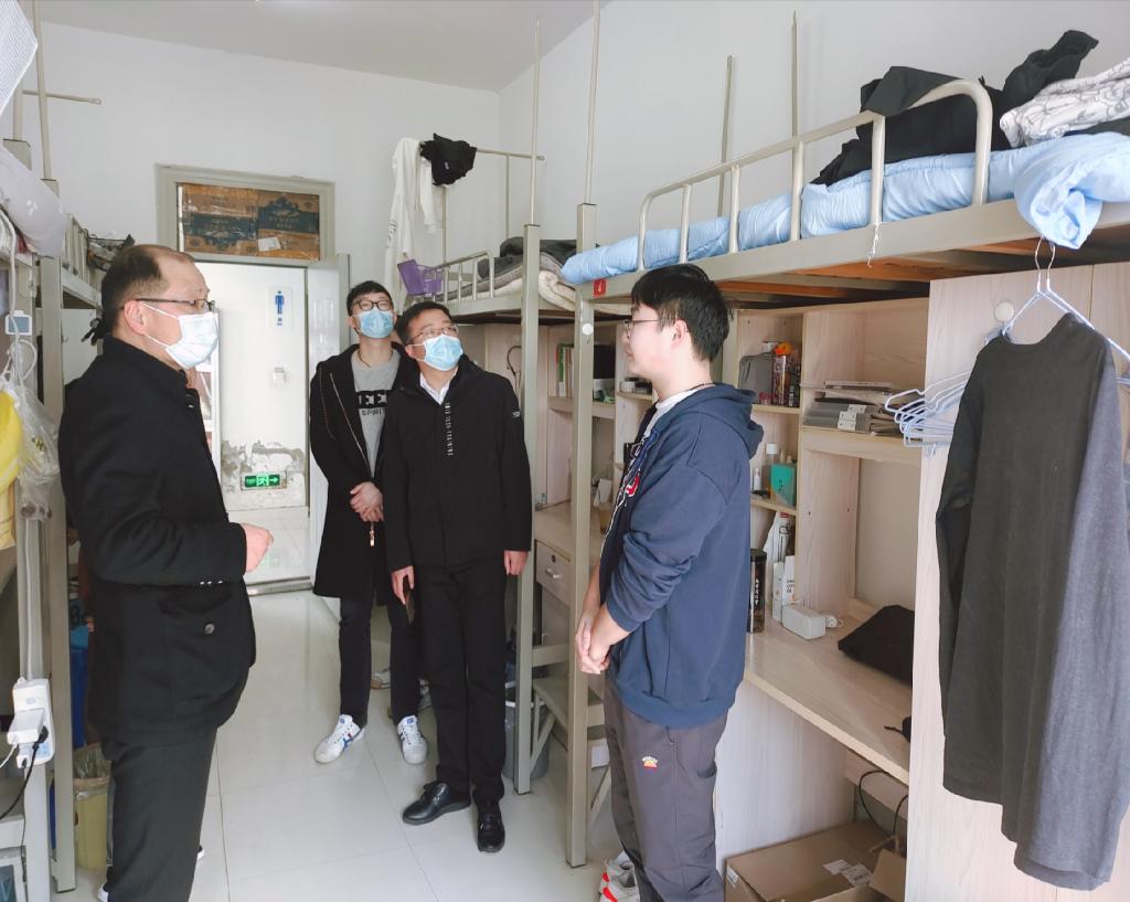 检查过程中,院领导老师与同学们进行了亲切交流,对同学们的身体状况、思想状况、学习情况和生活近况进行了细致了解。领导们在检查过程中,不断叮嘱同学们:一是疫情防控不可松懈,坚持每天测量体温,异常情况要第一时间报告;二是宿舍要多通风、勤洒扫,良好的宿舍环境是健康的前提;三是希望同学们能够严格遵守学校管控规定,合理安排好个人学习与生活。