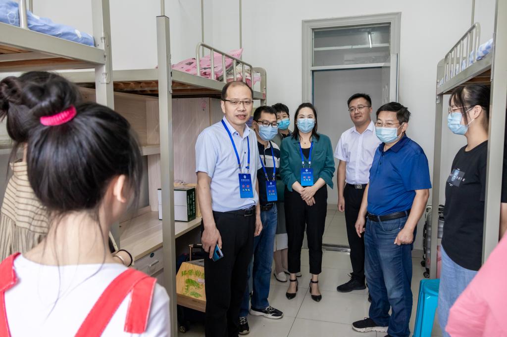 近日,带着对新生的关怀,管理学院党委书记丁景良,党委副书记、院长陈传万,党委副书记、纪委书记陶漫,党委委员、副院长郑谦,党委委员、副院长张国宝与学院全体辅导员一道深入学生公寓亲切看望刚入住的2022级新同学。