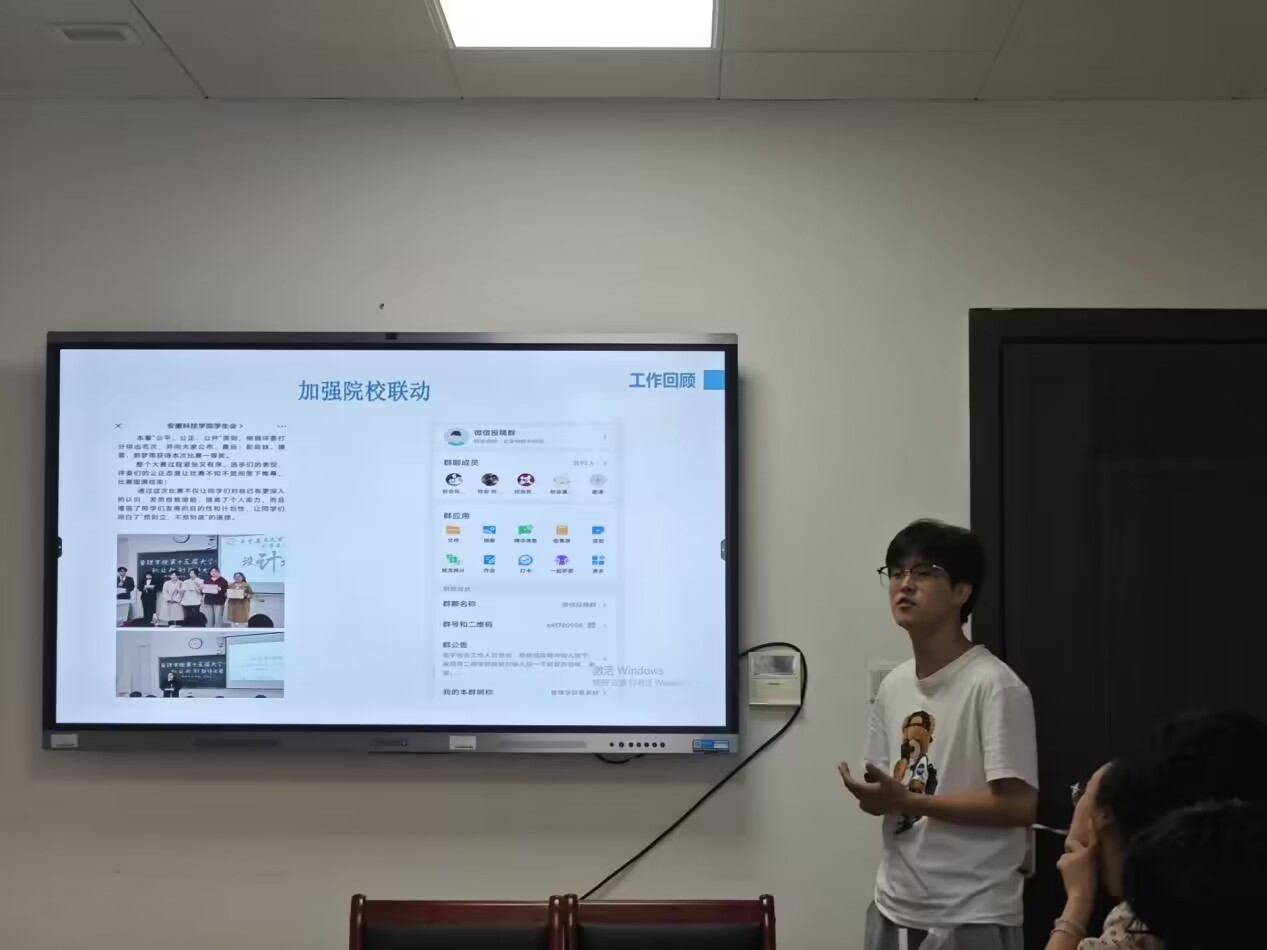 随后,学生会主席团成员朱一,各部门负责人史梦玲、孙绍钧、卢程龙、葛想想、葛家旺、肖雯雯就本学年工作完成情况与活动开展情况做出了详细的PPT述职汇报,总结了成绩、分析了不足、提出了解决思路,同时也对下一学年的各项工作与安排进行详细规划。