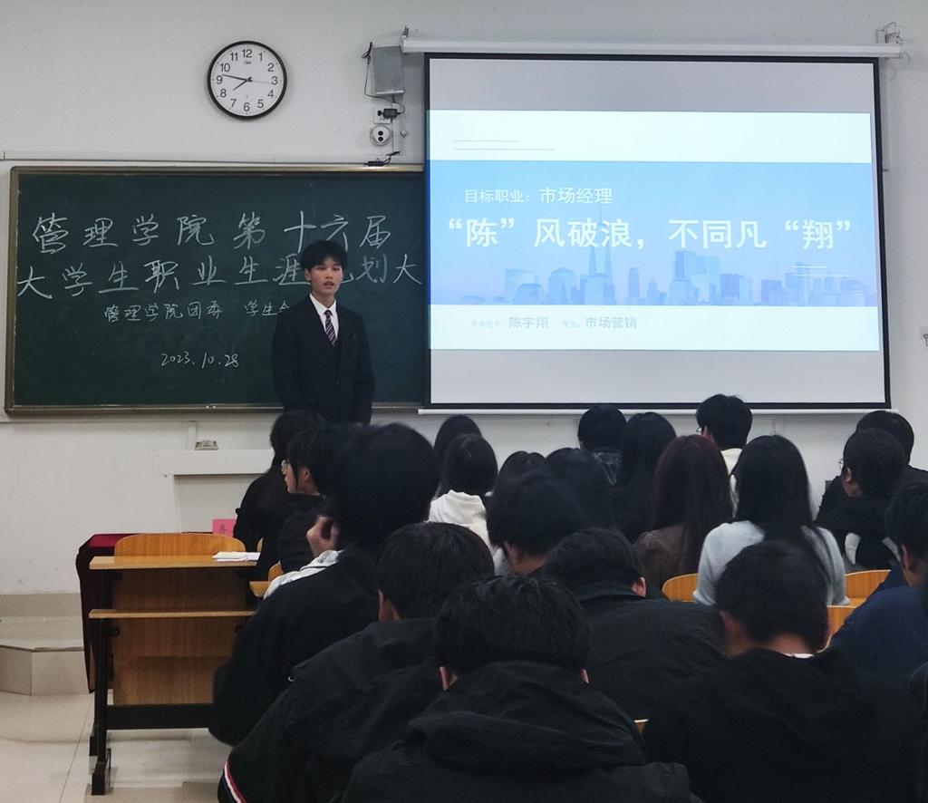 本次比赛以“规划职业人生,放飞青春梦想”为主题,旨在引导学生树立正确的成才观,培养自己的职业规划意识,科学规划自己的职业生涯,为成功打造自己的精彩人生做好铺垫,促进大学生高质量就业。经过初赛选拔,共有10位参赛选手进入决赛。决赛采用PPT现场汇报的形式,每位参赛选手灵活运用多媒体,针对自我认知、职业认知、实施方案,评估与调整等五个方面对自己的《职业生涯发展报告》进行具体形象的陈述。