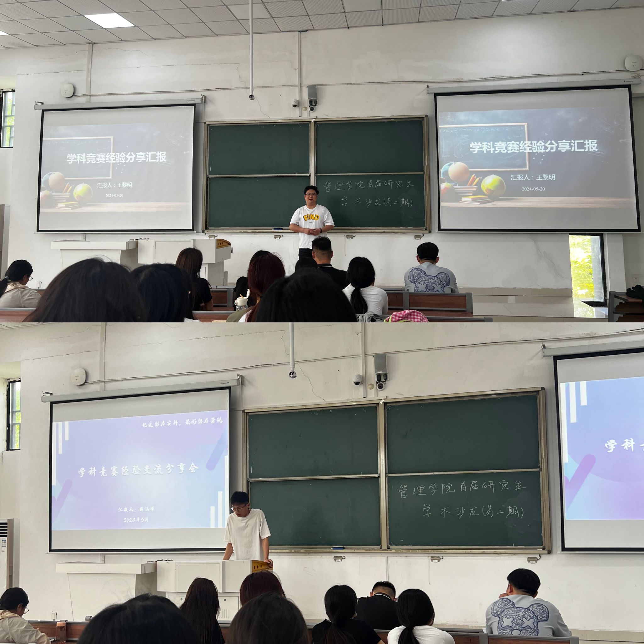 为进一步激发研究生学术热情,提高研究生学科竞赛的积极性和参与度,4月10日下午,管理学院在致知楼B111举办了研究生学科竞赛经验分享会。本期活动邀请了2022级农业管理专业的王黎明和2023级农业管理专业的薛满峰两位同学,分享他们在学科竞赛中的经验与心得,2024级全体研究生参加分享会。