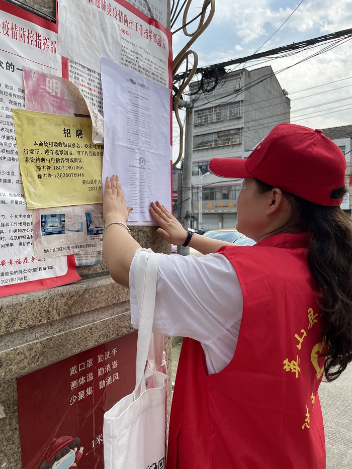 疫情无情人有情,志愿服务我先行。2021年7月至今,管理学院研究生支部党员(2020级农业管理专业)王小东同学在自己家乡主动请缨,坚守在英山县城北社区的疫情防控值守点,为来往的人员测量体温,登记相关信息,提醒辖区居民要提高防控意识。