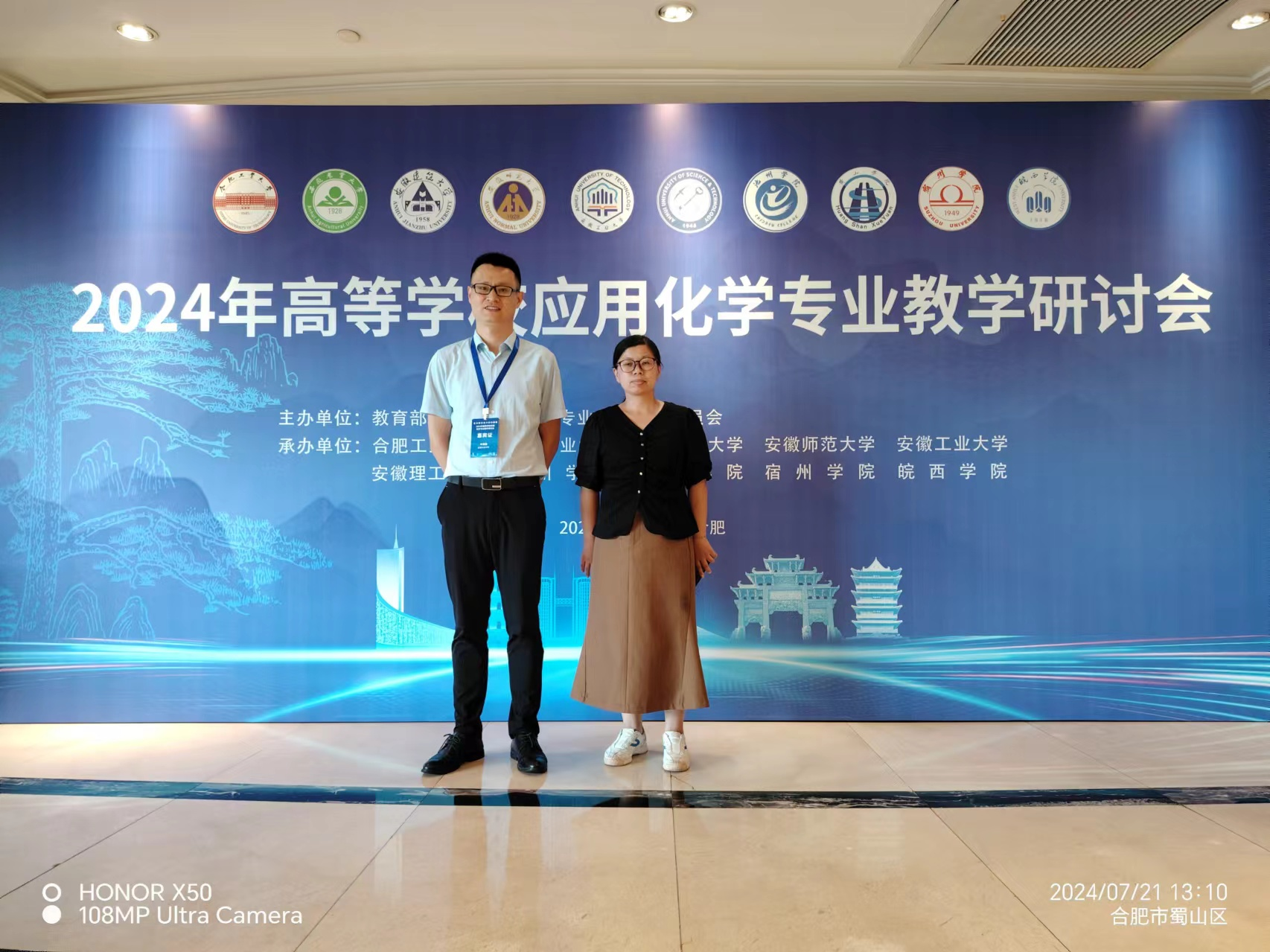 2024年7月19日-21日,由教育部高等学校化学类专业教学指导委员会主办的“2024年高等学校应用化学专业教学研讨会”在合肥工业大学召开。我校化学与材料工程学院副院长叶龙强副教授、应用化学专业负责人张婷教授参加了此次研讨会。