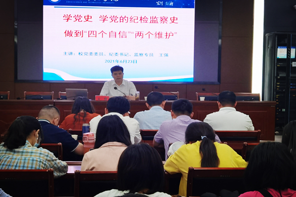 6月23日上午,校党委委员、纪委书记、监察专员王强以“学党史、学党的纪检监察史,坚定‘四个自信’做到‘两个维护’”为题,为纪检监察党支部党员和财经学院师生讲授了一堂生动的党史学习教育专题党课。