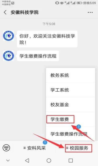 1.点击“乐动网页版登录入口_乐动网页版(中国)微信公众号”界面右下角“学生缴费”菜单。