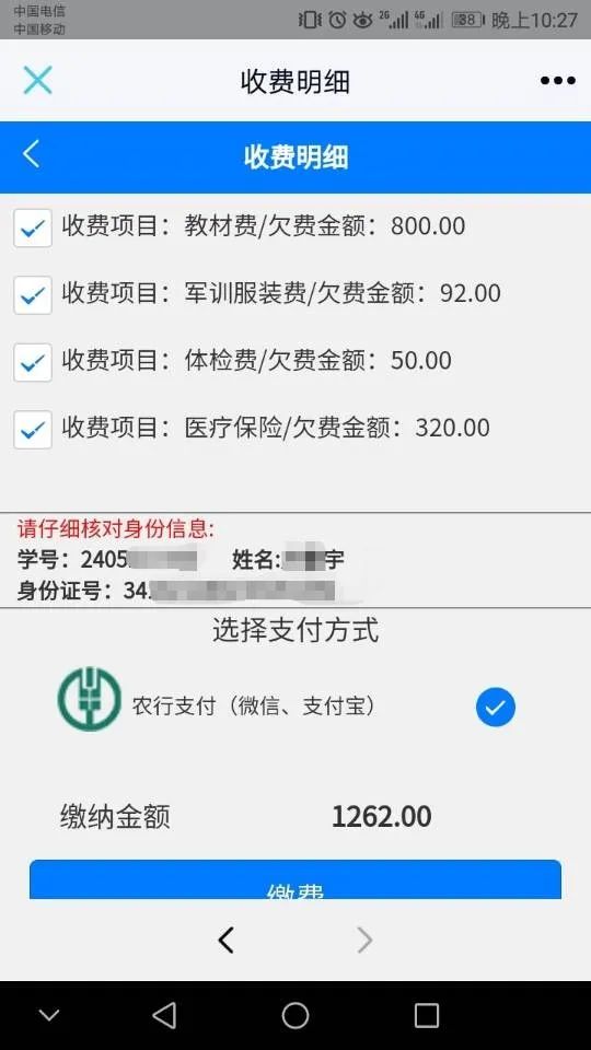 5.点击缴费,跳转到微信支付页面(目前仅支持微信支付)